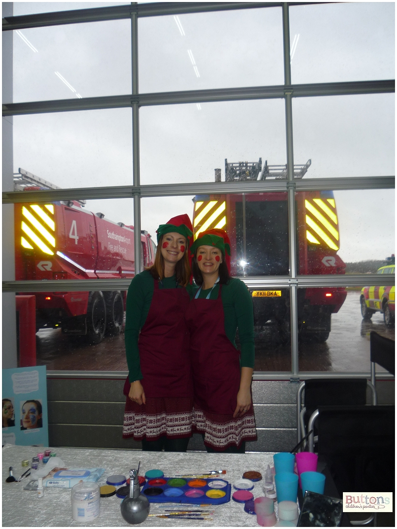 Buttons Children’s Parties was booked to entertain the staffs children (60 of them) at there Christmas party this morning and the party base, the fire house at the airport of course! A very cool venue for my last Christmas party of the year. We could see planes and jets taking off and landing though the big fire doors.