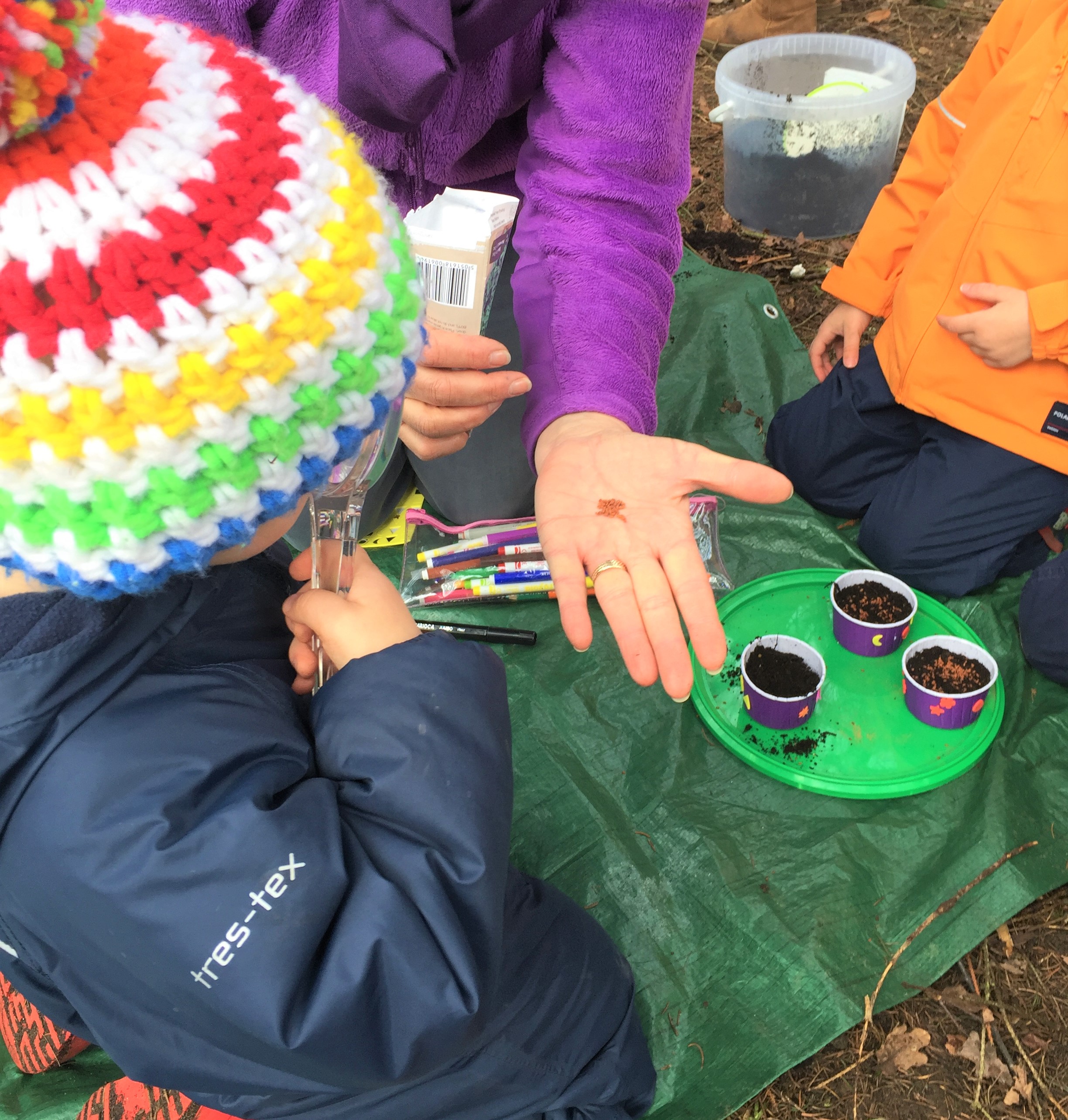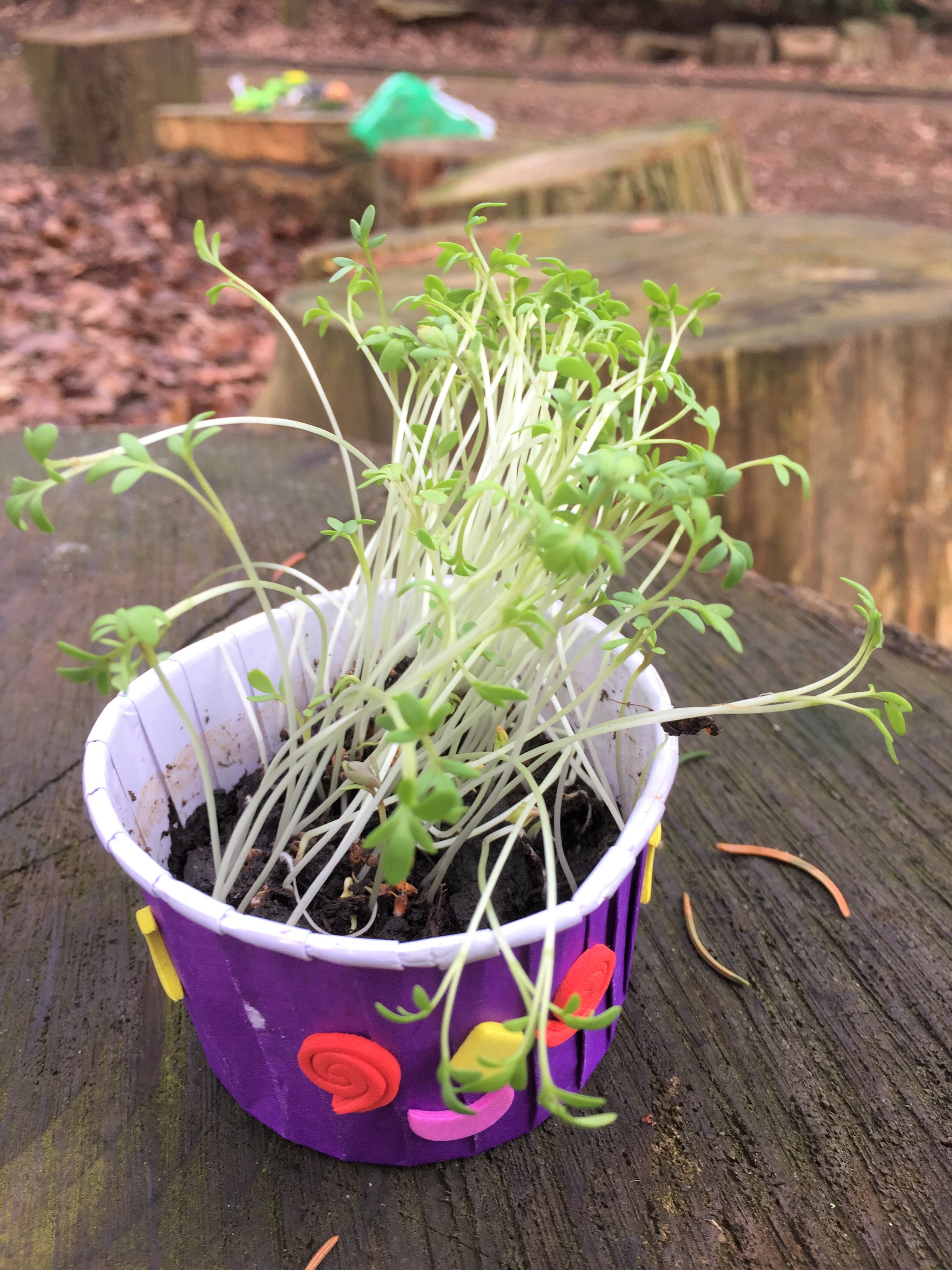 This activity was a big hit and Forest School a few weeks ago and one that kept giving joy. I have been sent a photo of the cress growing by one exciting child and another one brought his back to show us how big it had got before he took it home and had it in an egg sandwich.