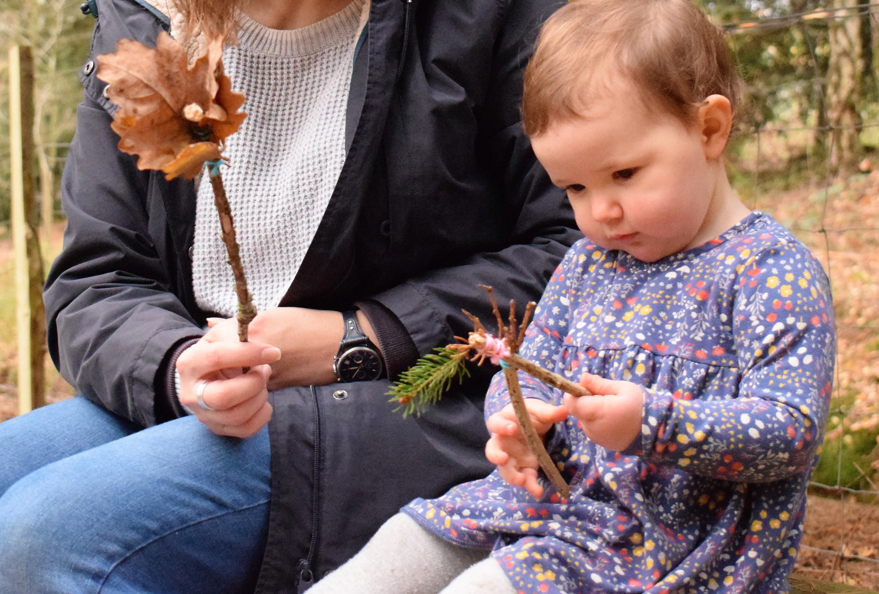 On our last family walk stuffed a few bits of pre-cut wool in my pocket before we stumbled out of the door over each other. While Neive was busy investing myself and Mark were on the lookout for tickle stick bits. Neive is too little for fairy wands, elf sticks or wizard wands, but tickle sticks are just up her street. She is also too little to make them, but older children will love the search for sticks and ends as much as the play so get them on the lookout.