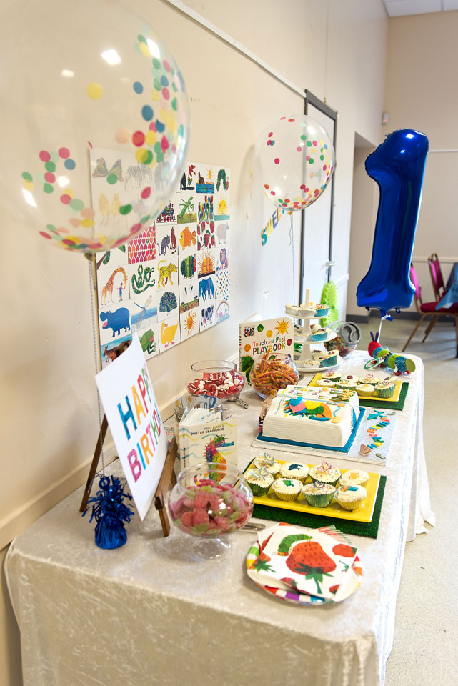 So of course, we did a little party for her and of course it had a theme. We went with Eric Carle as Neive has a few of his books and really enjoys them, I love his illustrations and the bright colours lend themselves perfectly to a first birthday bash.