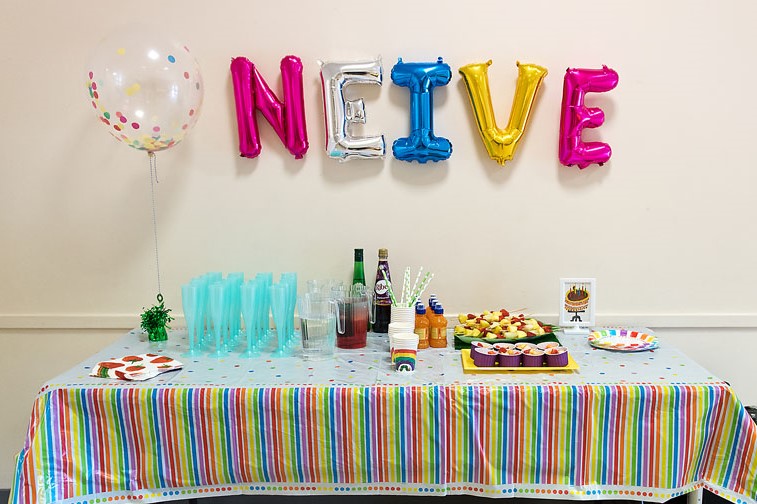 I LOVE balloons and these confetti filled balloons were so perfect for the theme along with the mini letters balloons. I used the Large confetti balloons on the cake table, drinks table and mixed them with some latex balloons on the centre of the table for guests to sit at. The letter balloons are filled with air and last for ages, I attached these to the wall with glue dots. And of course I we had a giant number 1.