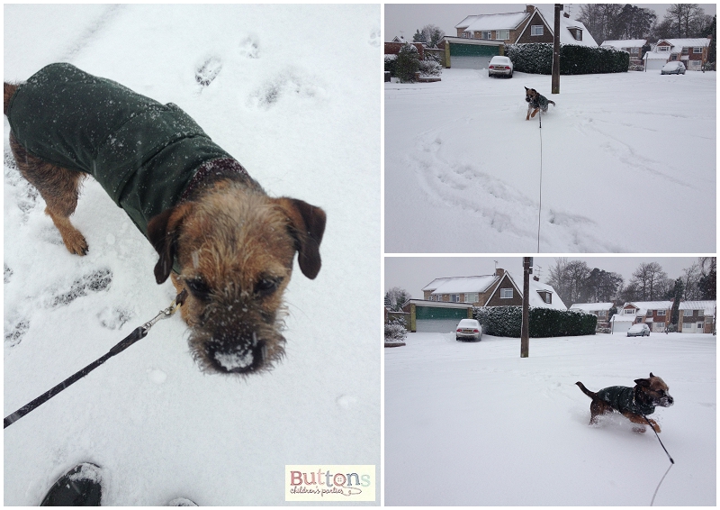 This is the first proper snow he has been in. In time I’m sure he will learn that your not meant to dunk your head in it, eat it or use you nose as a snow plough but for now he is having tons of fun and does not seen fussed about the cold.